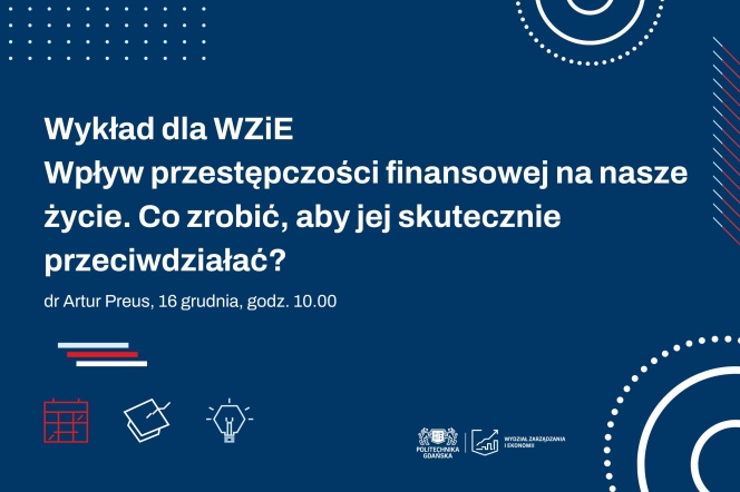 Na wykładzie zostaną przedstawione i wyjaśnione mechanizmy oraz wpływ przestępczości finansowej - prania brudnych pieniędzy, korupcji, oszustw oraz nieprzestrzegania sankcji na współczesne systemy gospodarcze i polityczne. Z wrócona będzie także uwaga na jej skutki społeczne. Ponadto ukazane zostaną trendy (np. neobanki, kryptowaluty) oraz znaczenie działań podejmowanych przez podmioty sektora produktów i usług finansowych dla przeciwdziałania przestępczości finansowej.