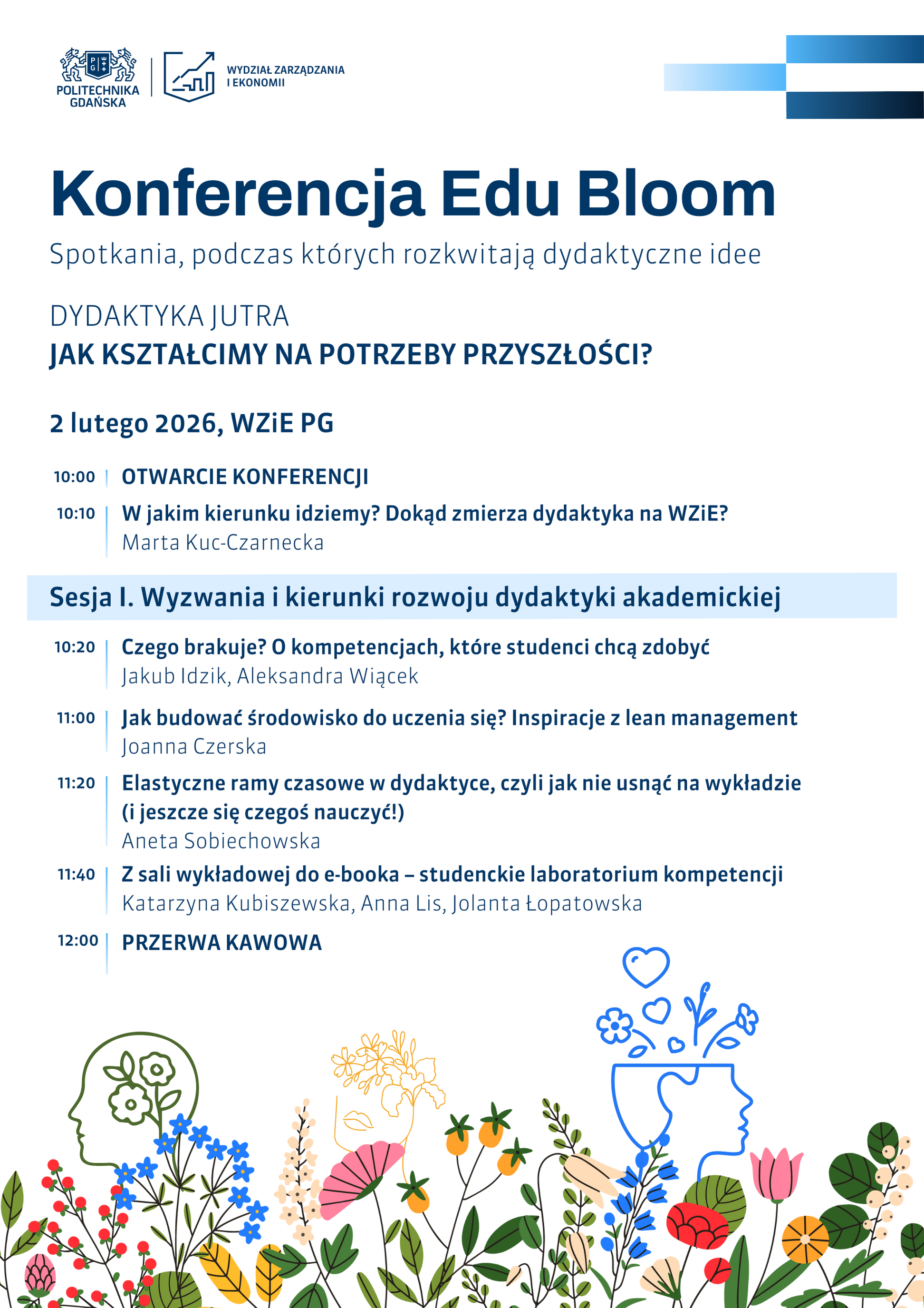 Serdecznie zapraszamy 2 lutego na wydziałową konferencję dydaktyczną Edu Bloom, której tematem przewodnim będzie: „Dydaktyka jutra. Jak kształcimy na potrzeby przyszłości?”.