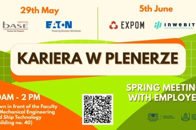 For the third time, the Careers and Alumni Office, in collaboration with the Faculty of Mechanical Engineering and Ship Technology at Gdańsk University of Technology, invites students, PhD candidates, and graduates to take part in Kariera w Plenerze – an initiative aimed at supporting young people in planning and developing their professional careers through direct interaction with company representatives.