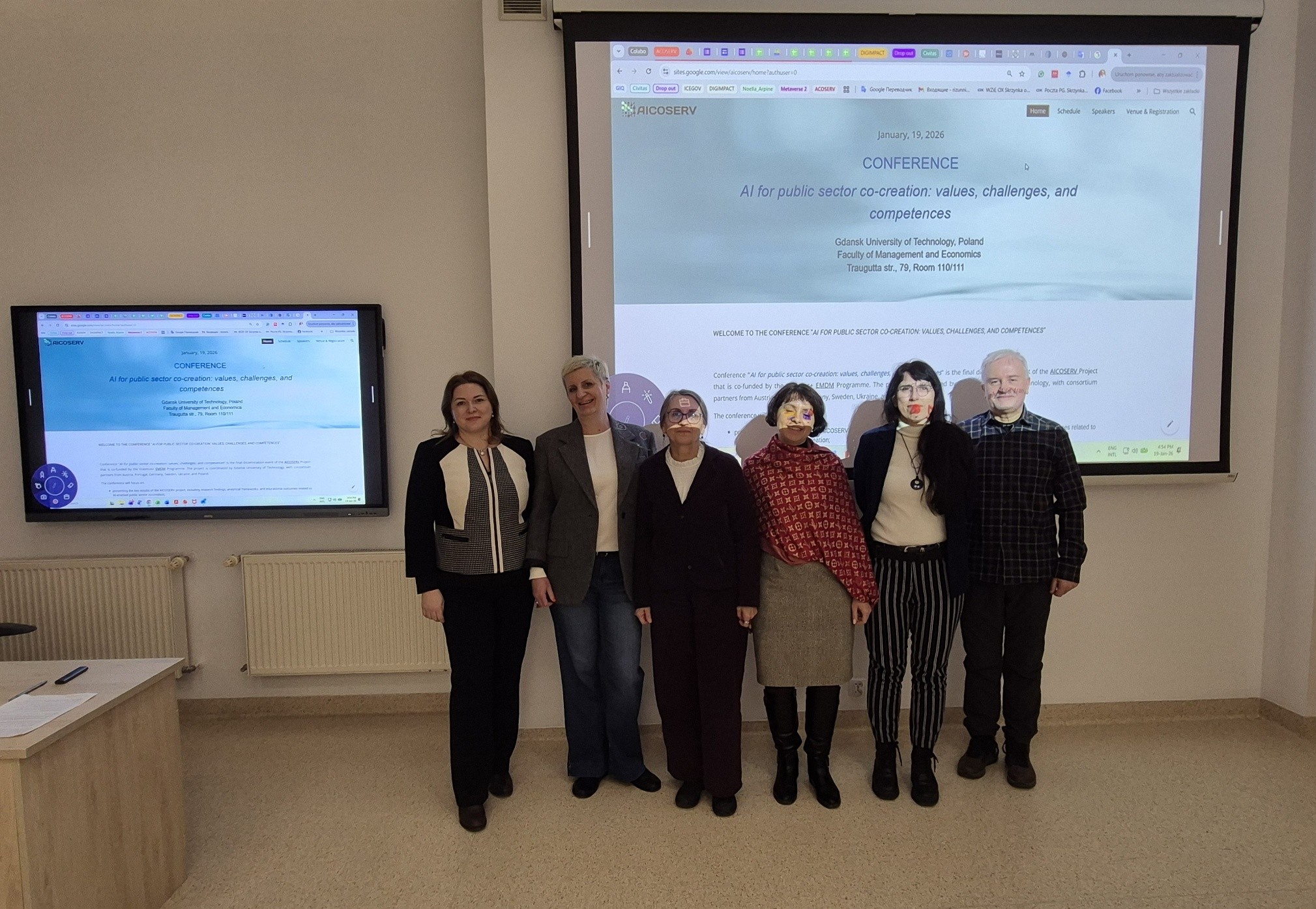 On 19 January 2026, the Faculty of Management and Economics at Gdańsk University of Technology hosted the final conference of the AICOSERV project, entitled “AI for Public Sector Co-Creation: Values, Challenges and Competences.” The event marked the formal conclusion of a collaborative international project co-funded under the Erasmus+ Programme, implemented by a consortium of partners from Poland, Austria, Portugal, Germany, Sweden, and Ukraine.
