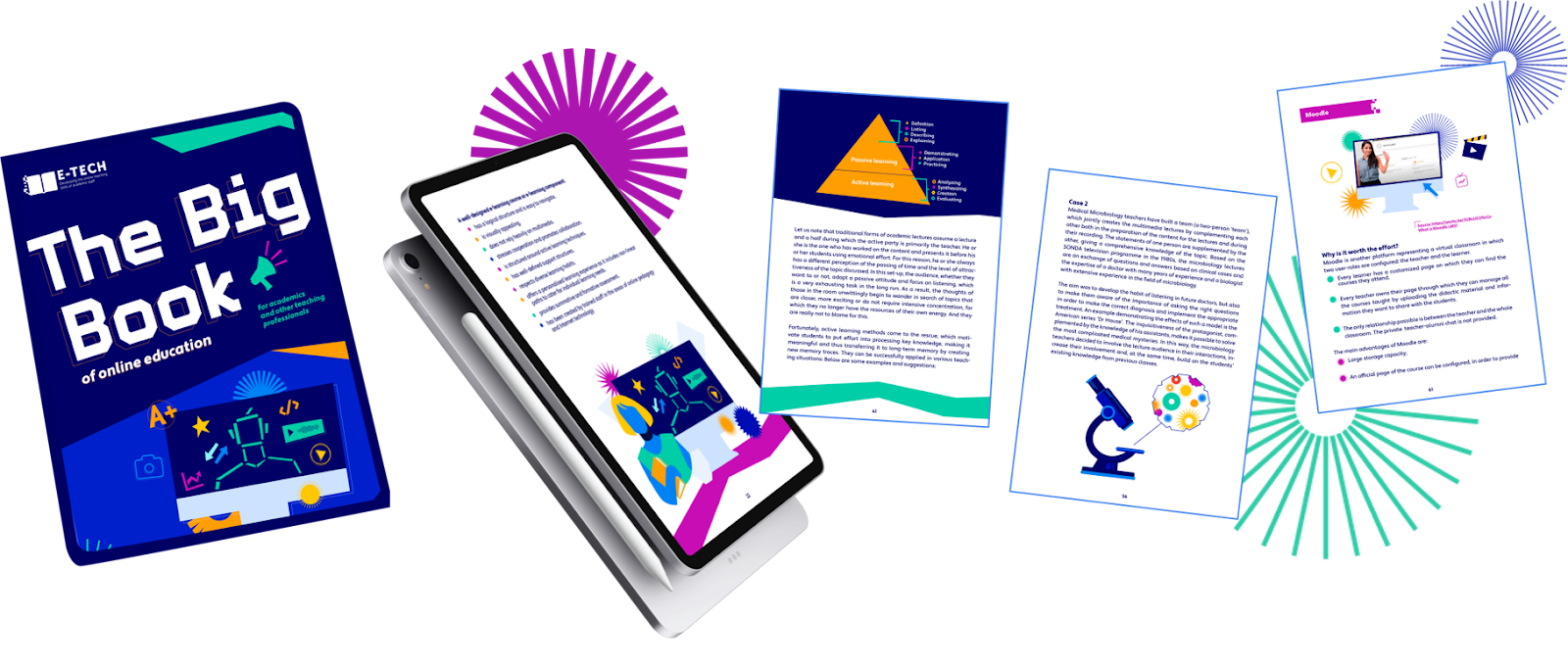 “The Big Book of Online Education” to unikatowa, bogata w multimedia publikacja napisana przez międzynarodowy zespół autorów - ekspertów w dziedzinie metodyki, nowoczesnej edukacji i e-learningu. Znajdziemy w niej mnóstwo praktycznych porad, inspiracji, narzędzi, scenariuszy użycia oraz przykładów zastosowania innowacyjnych metod dydaktycznych w praktyce akademickiej. Jest to najbogatsza tego typu pozycja na rynku przewodników metodycznych na poziomie szkolnictwa wyższego! Niemal 300 stron użytecznej i pięknie opracowanej treści. Obowiązkowa lektura dla wszystkich nauczycieli i osób, którym zależy na edukacji w najlepszym wydaniu. W publikacji znajdziemy m. in. takie tematy jak: Active learning in practice, Online teaching in STEM, Storytelling, Gamification, Game Based Learning, AI in education, Social media learning, Online assessment, XR technologies, Personalisation i wiele innych. Więcej o projekcie